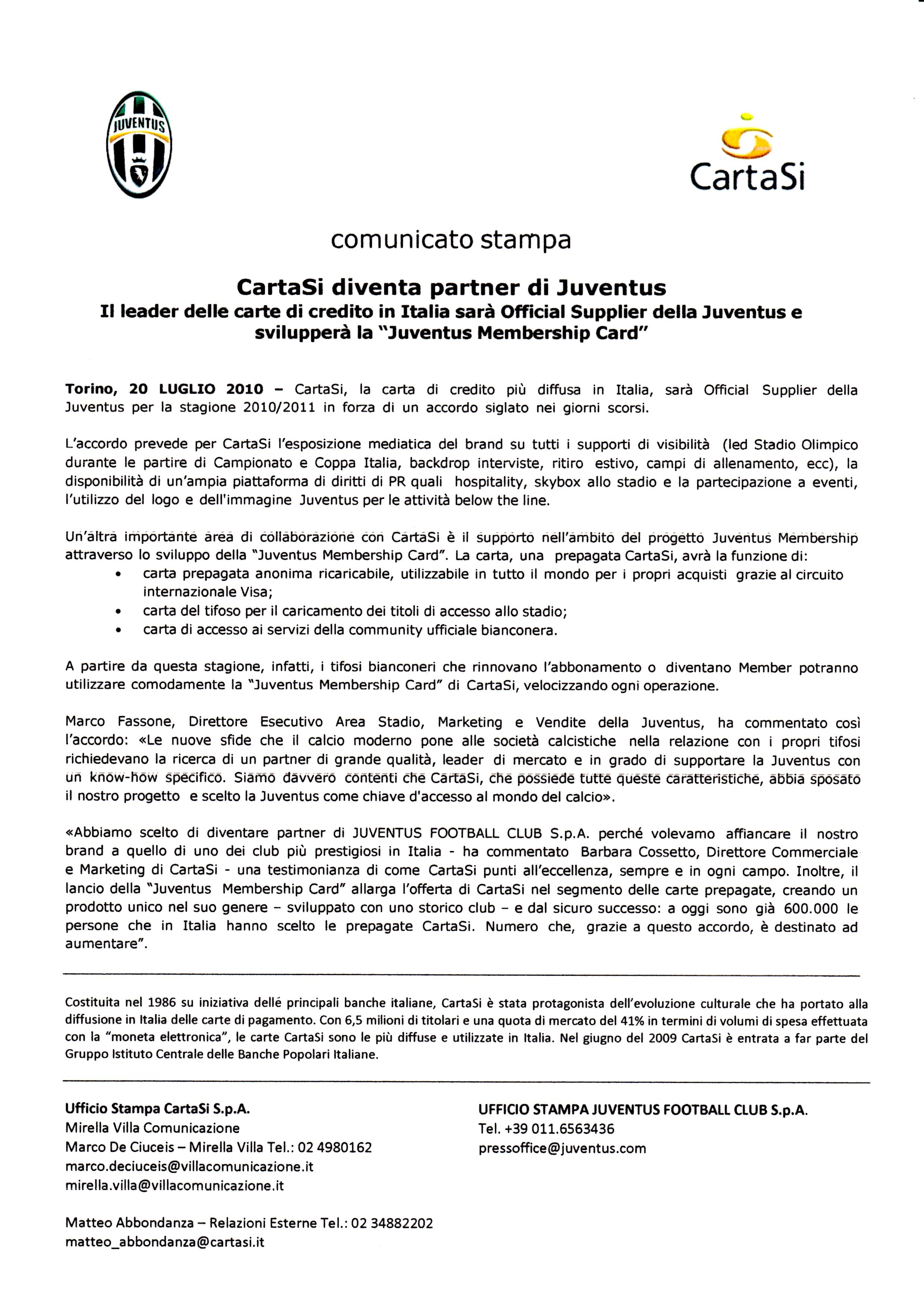 CartaSi diventa partner della Juventus